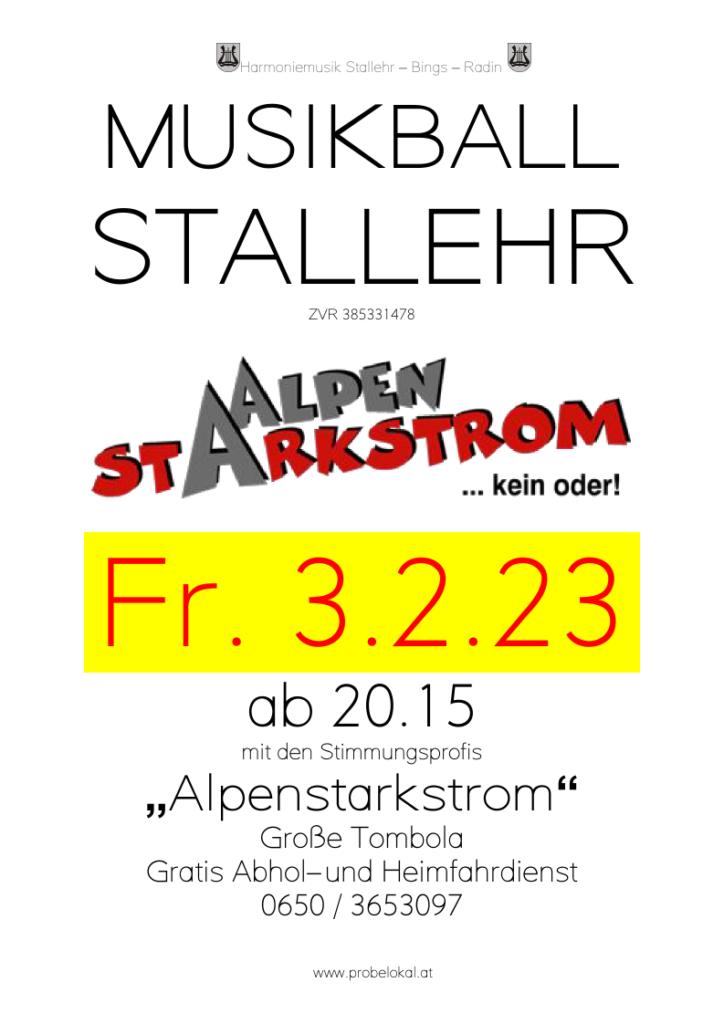 Die Musikanten der HM Stallehr – Bings – Radin bedanken sich auf diesem Wege bei allen Ballbesuchern und wünschen noch eine schöne närrische Zeit!