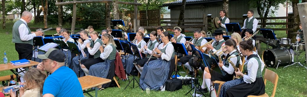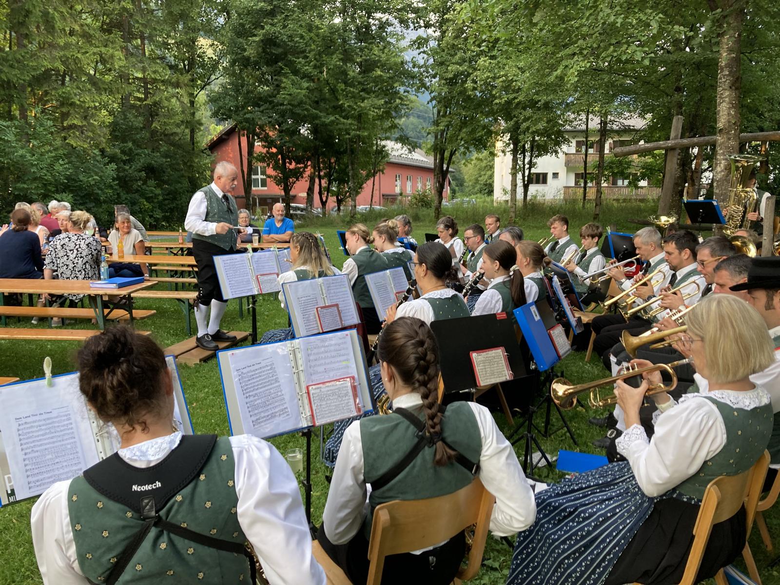 Bei herrlichem Sommerwetter veranstalteten wir am 01. Juli 2025 beim Spielplatz im Wäldle einen Dämmerschoppen unter der Leitung vom Ehrenkapellmeister Willi Bitschnau.
